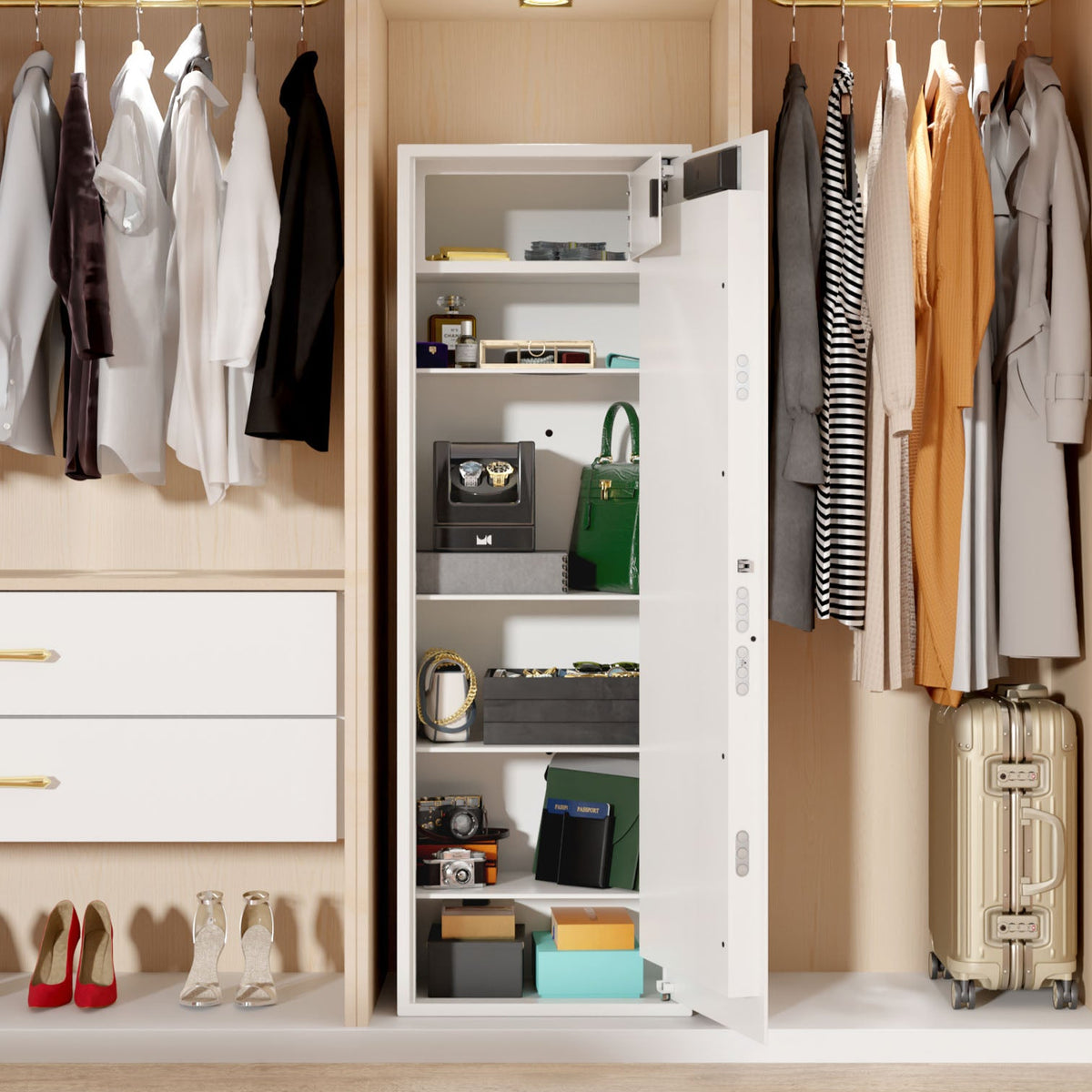 - Custom organization: Configurable interior that comes with two adjustable shelves (fits up to six), an internal lock box, and a complimentary jewelry bag, with space to securely store your valuables including documents, jewelry, up to ten rifles, and more.