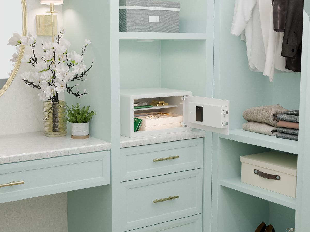 The Mycube Touch Mini brings biometric convenience to compact spaces. Crafted for closets, cabinets, and shelves, it protects jewelry, cash, documents, and small devices with the assurance of Mycube steel construction. A refined, modern form that blends effortlessly into your home.